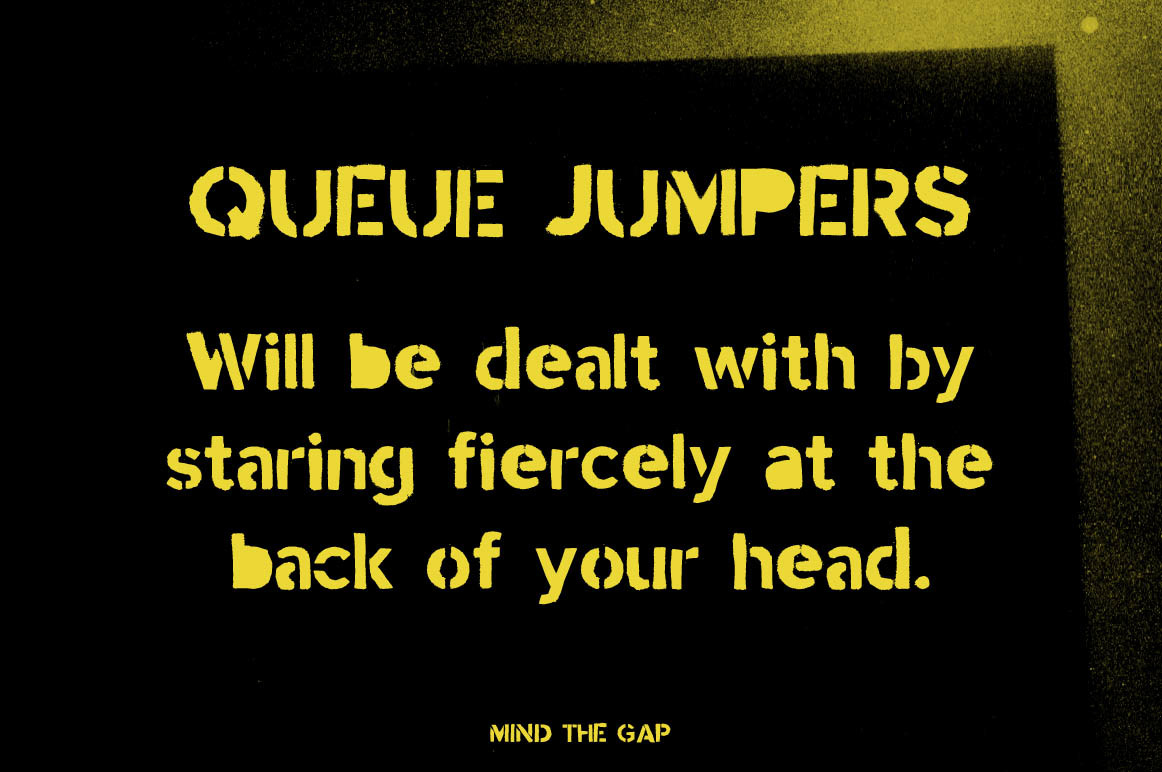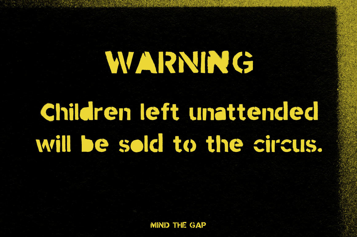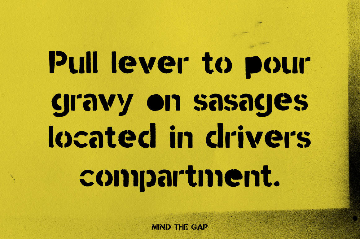Mind the Gap was born out of the frustration of the love/hate relationship I have of the daily commute. I'm not sure if it's just a London thing or if it's the same in New York City, Paris, Madrid, Seoul, Shanghai, Beijing, Mexico City, Moscow, Tokyo and Berlin. It was created by hand cutting letter stencils and spraying them with black paint. This gives it an industrial almost military look and feel. Try it for free.